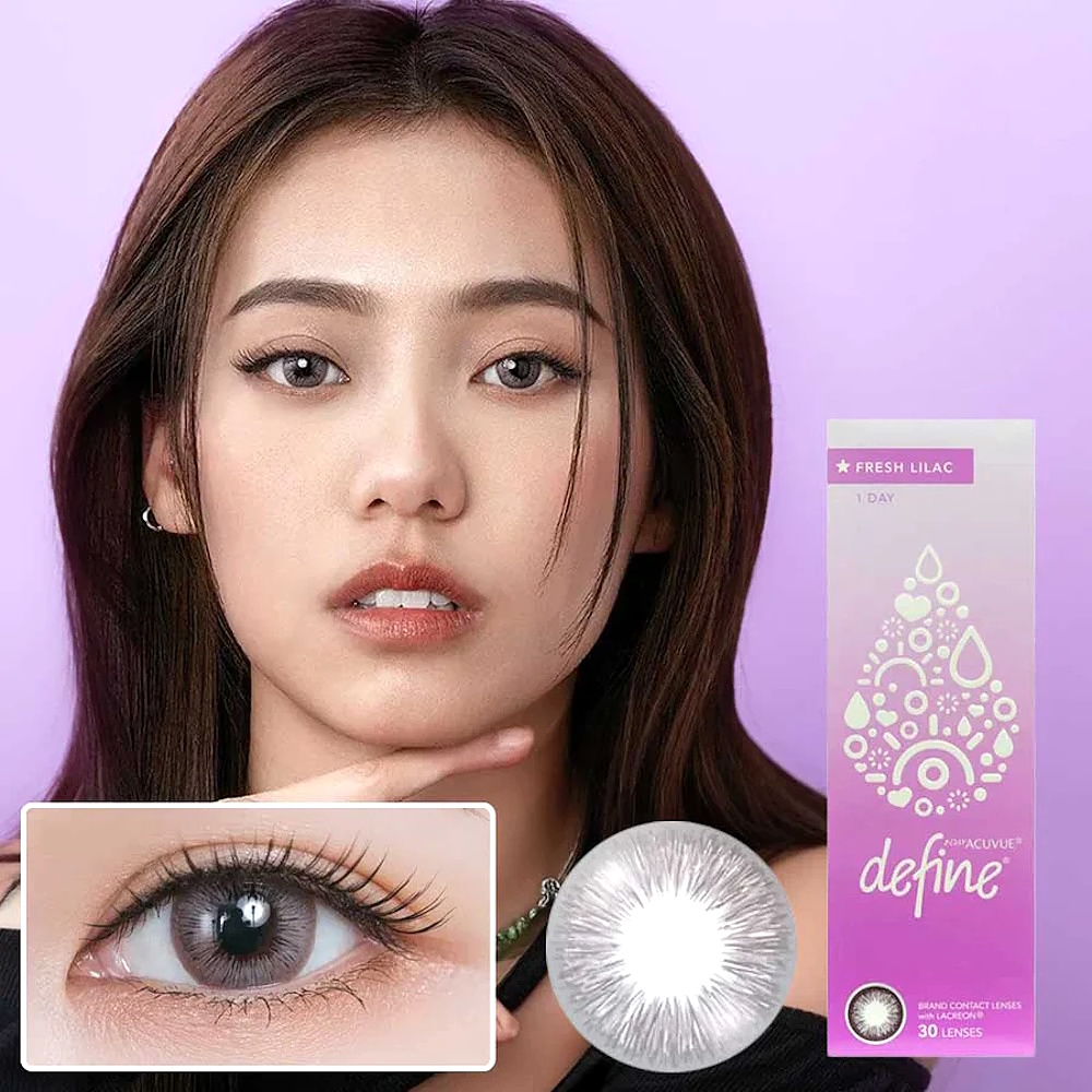 Illuminate your eyes with ACUVUE DEFINE Fresh Lilac. Soft lavender tones, moisture-rich comfort, and UV protection combine for a natural, radiant, and elegant everyday look.